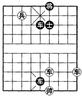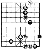 棋势与对策:黑方车沉底将军要杀。红方也是用跟的兵法,献车跟车,以跟取胜。