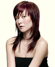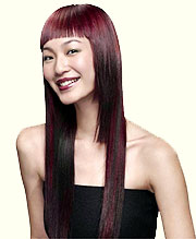 染色:刘海、发鬓、发尾里层染紫色,外层都用褐色挑染。