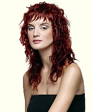 全头烫粗大的发圈,剪层次,颈项部分的发尾剪须须。发型故意弄得凌乱外翘。