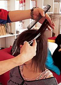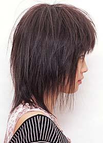 以直线形的修剪方式打造出整体发型的垂直感觉。同时带来脸部拉伸的效果。