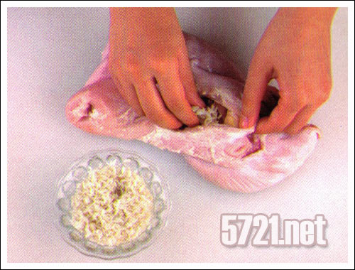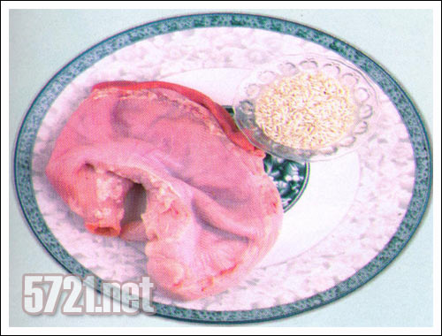 1、糯米淘洗净;猪肚洗净,将糯米放入猪肚内,用线扎紧。