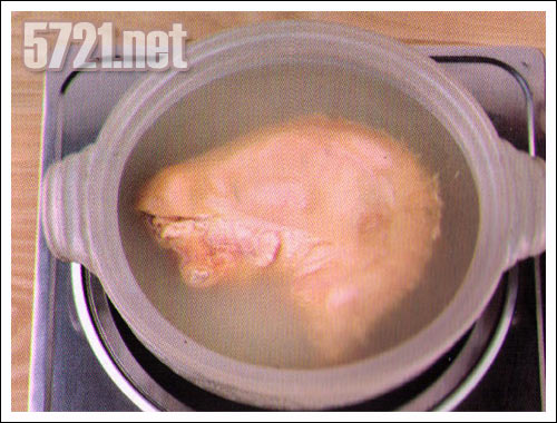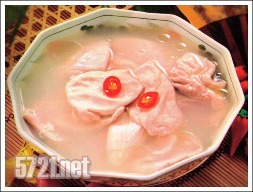 3、把猪肚放入煲中煲约1小时,然后取出糯米,将猪肚切成小块,放入原汤中继续煲,至肉烂熟后,加入调味料即可。