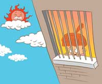 二楼以上窗户应加护栏。护栏应由金属制成,护栏之间最大间隙为4英寸,能承受150磅压力(儿童安全窗不同于防盗护栏)。至少要有一个窗户上的护栏是活动的,以防紧急情况发生时方便使用。