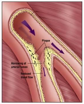 看看这张图:血管都堵塞了,血流怎么通过啊,那就少留供应了呗!到达心房和心室的血就少了,当然就缺血了!然后人就会有症状:如心前区疼痛,胸闷····等,如果上时间不扩血管治疗(口服硝酸酯类的药)就会造成心肌梗塞(心梗)。危及生命了!